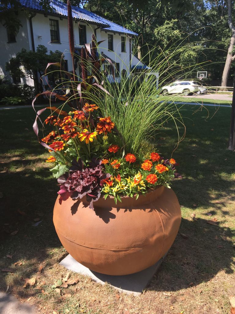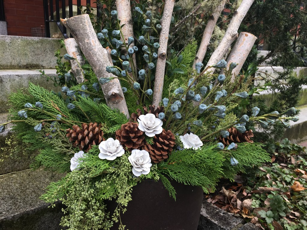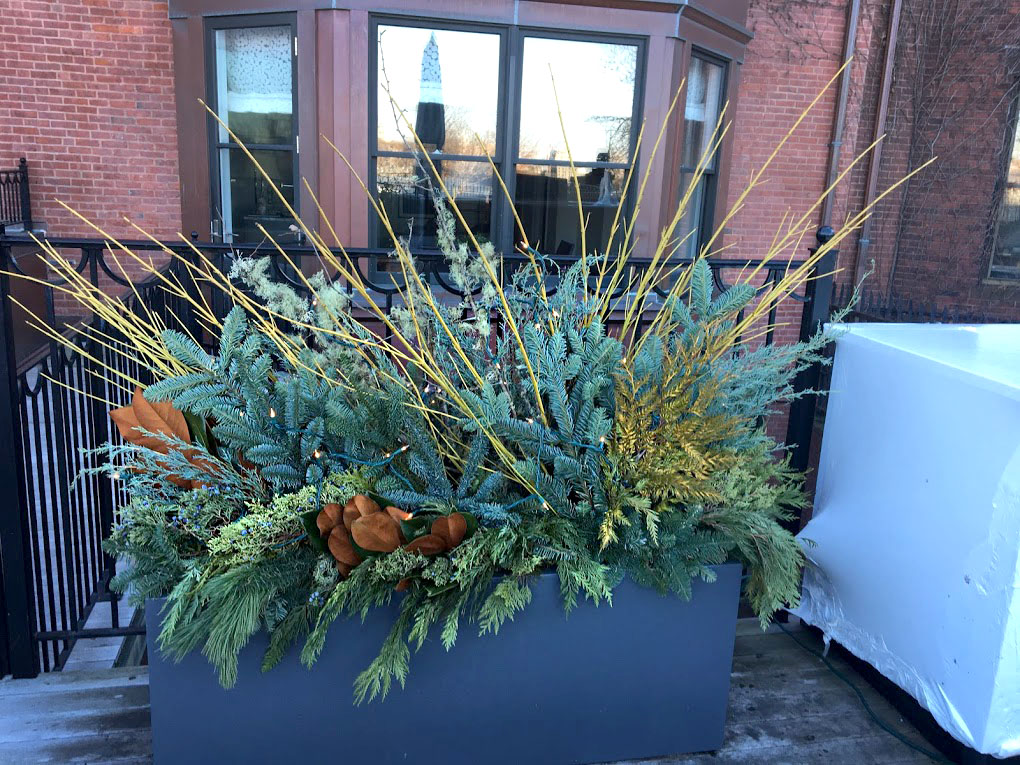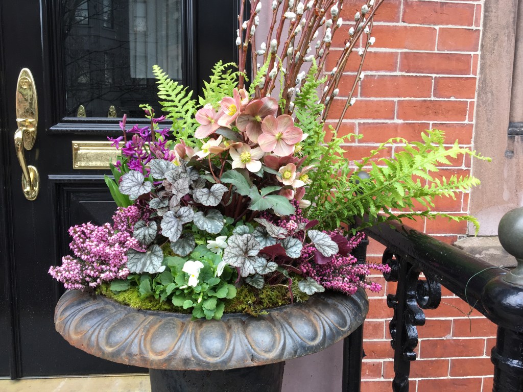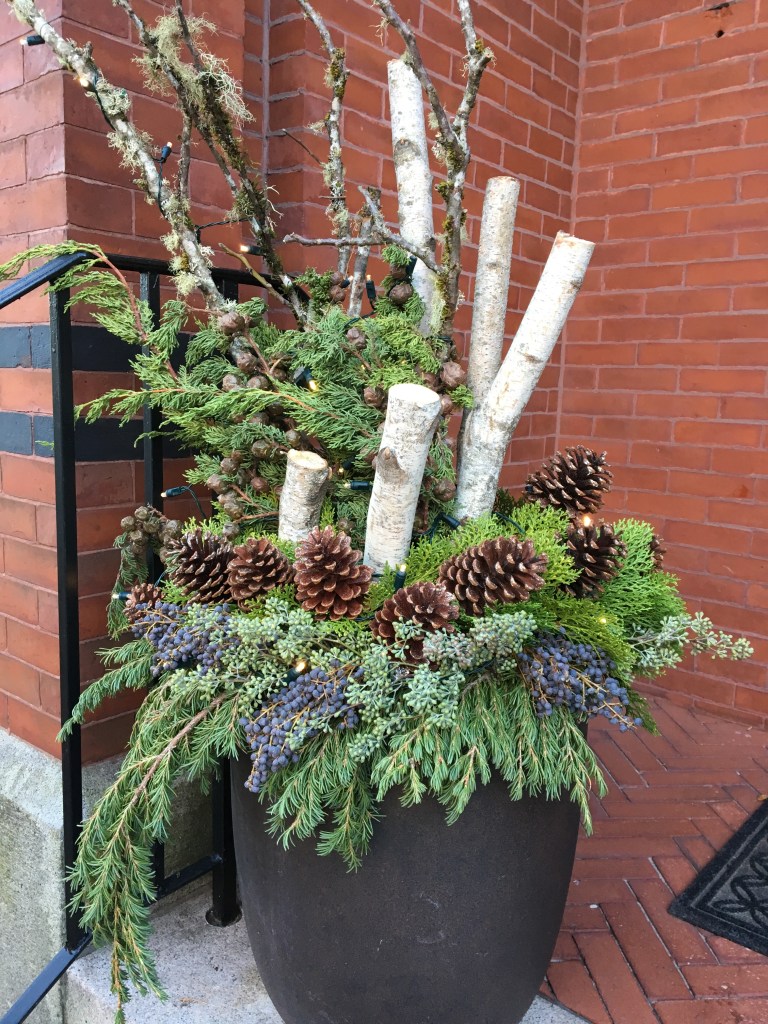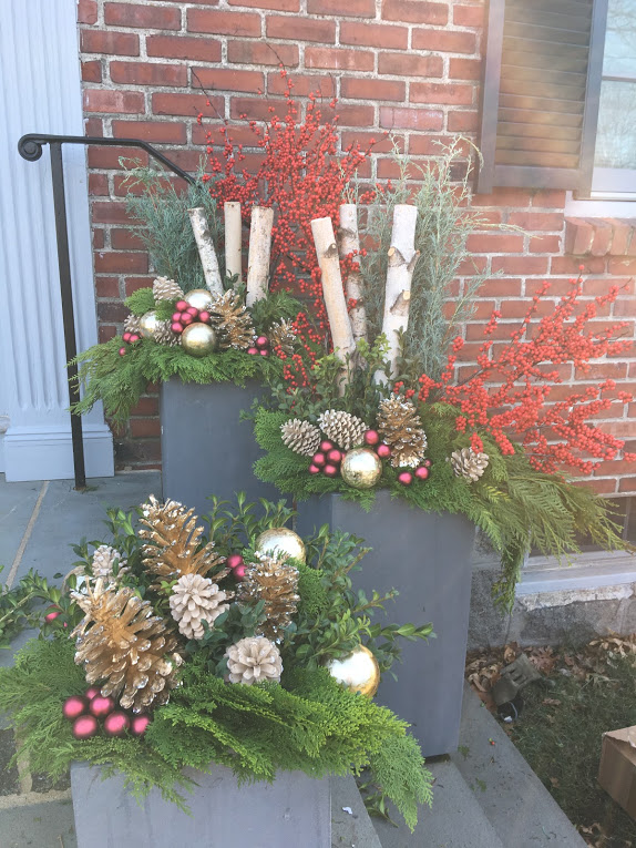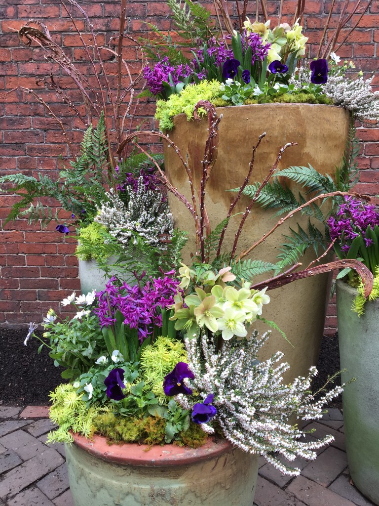For years, container plantings have been my primary artistic focus at work. I excel at creating cheerful spring plantings, lush summer pots, textural autumn containers, and bold winter displays. Below is a small sampling of my container portfolio.