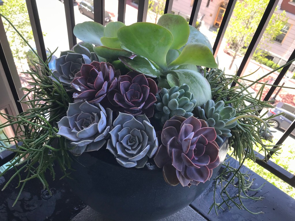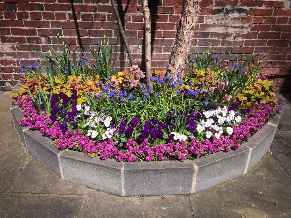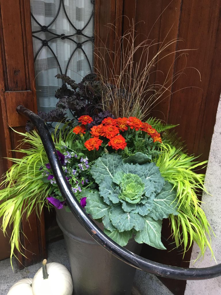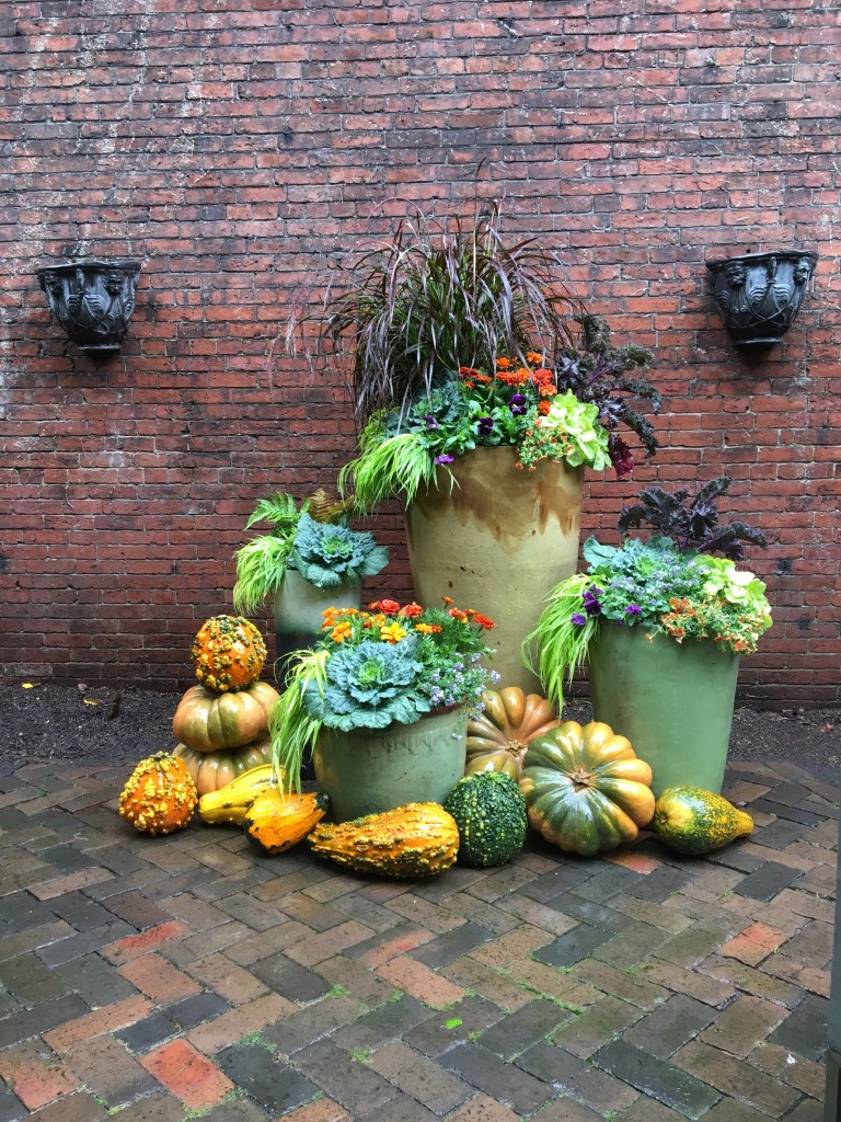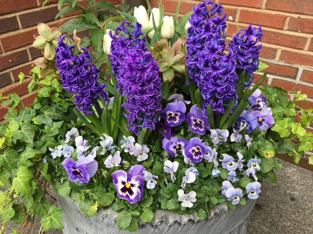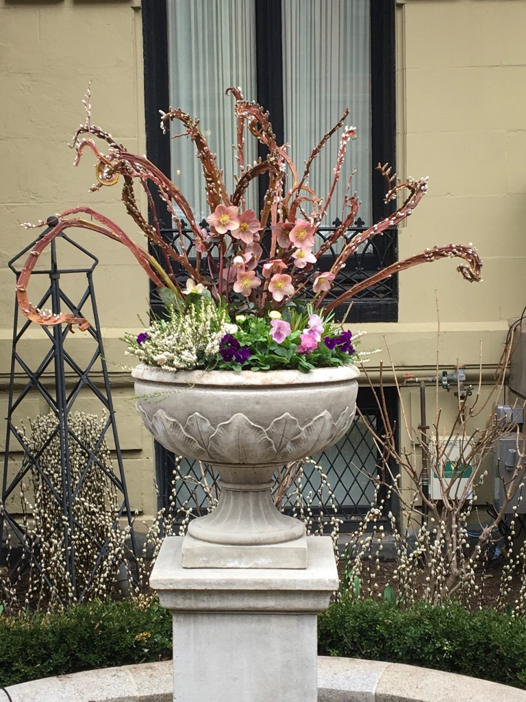 For years, container plantings have been my primary artistic focus at work. I excel at creating cheerful spring plantings, lush summer pots, textural autumn containers, and bold winter displays. Below is a small sampling of my container portfolio.